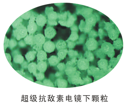 图1:普通抗敌素由于颗粒较大,且常常凝结在一起,大大地降低了药物的比表面积,抗菌能力较