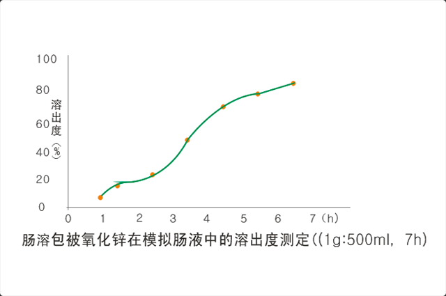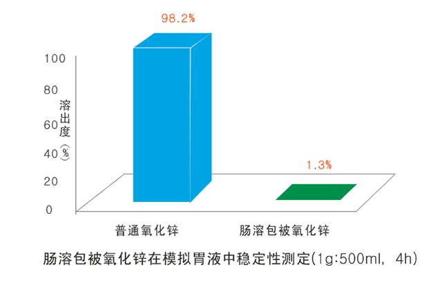 ※采用两次包被工艺:保证氧化锌98%以上可通过胃到达肠道,并且在6个小时内全部释放出来。